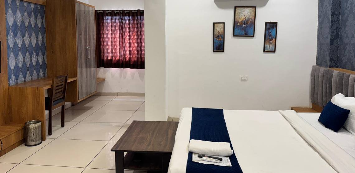 Perfect for business travelers, leisure guests, or couples seeking a peaceful getaway, the Premium Room combines privacy, warmth, and attentive service. From cozy seating areas to premium amenities, every detail is crafted to enhance your comfort. Enjoy city views, personalized hospitality, and a stay that reflects the charm and vibrancy of Indore.